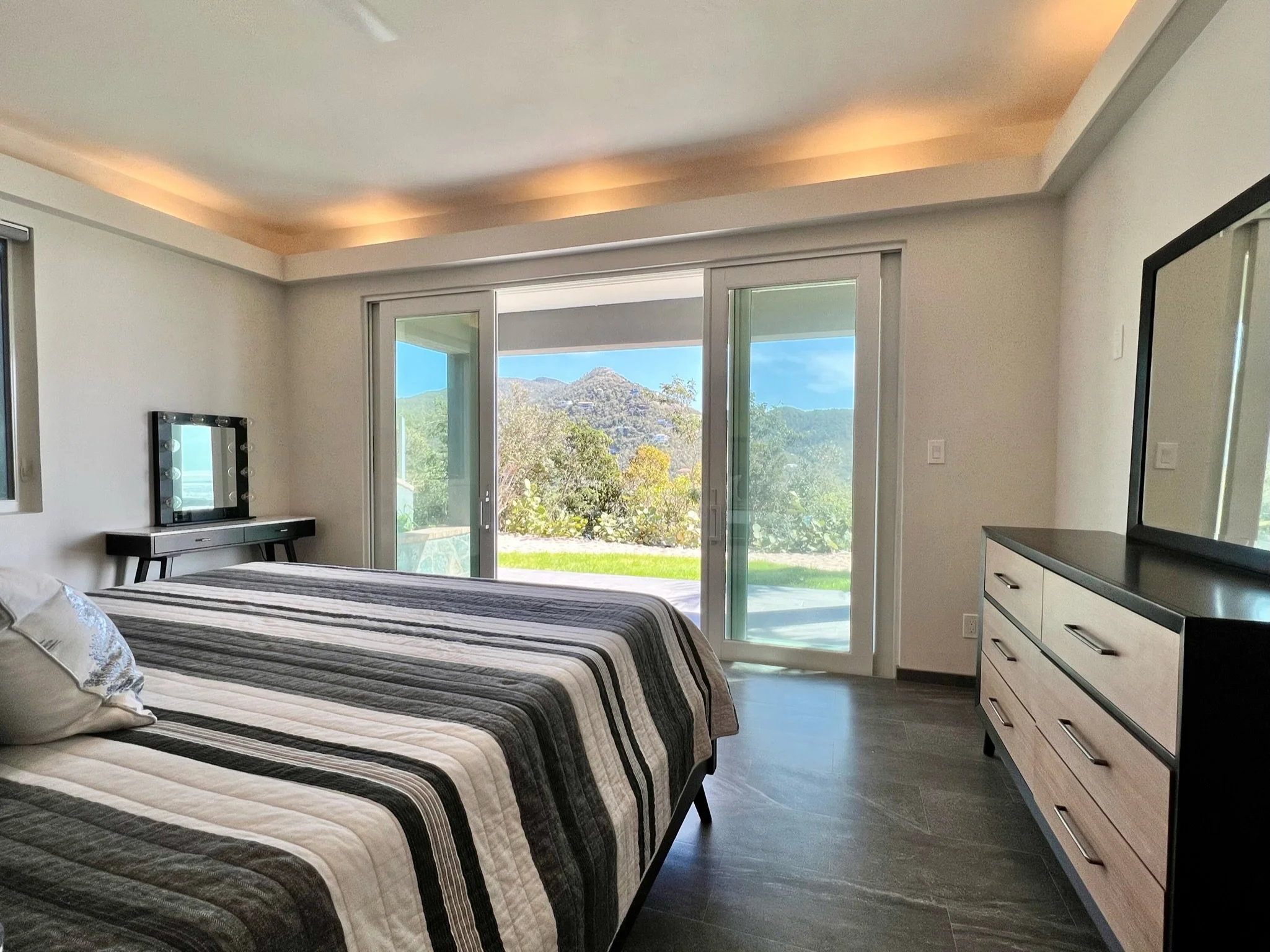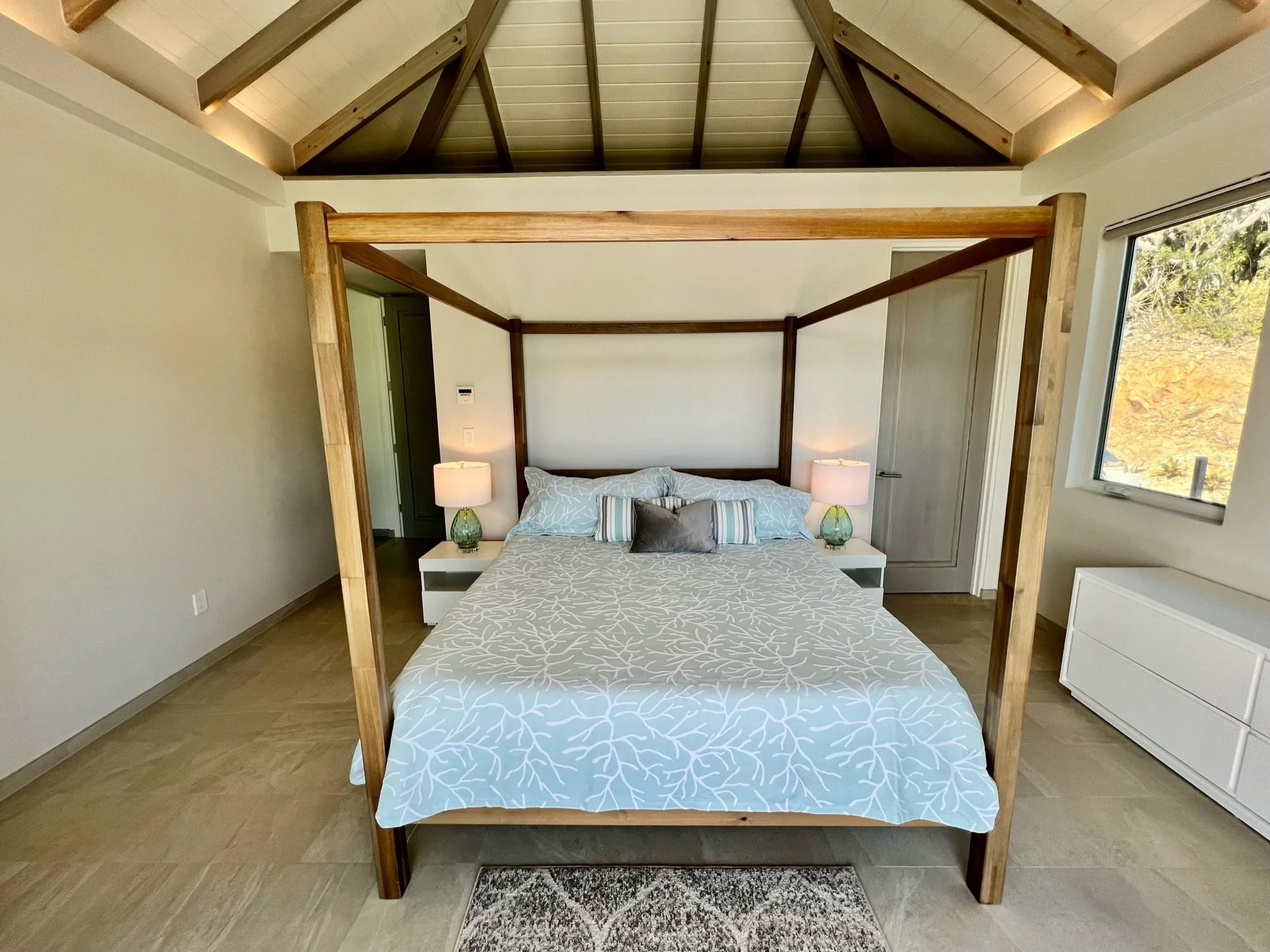 This villa features two wet bars - one in the great room and one in the private movie theatre room - offering convenient spaces to entertain and relax. Sunsets from the pool deck are amazing, and for those looking for a short adventure, a 50-step hiking path brings you to the crest of the hill on the property for a magical view of the evening show. With indoor and outdoor dining and lounging options, interior access bedrooms, interior staircase, gated entry, stunning views, premium furniture, and beach access, this new villa is unmatched on St. John. All stays at this property include a full-service concierge to assist with travel planning, including airport transfers and arrival coordination, referrals for rental cars, boat trips, provisioning service, massage services, kayak and SUP rentals, private chefs, and more.