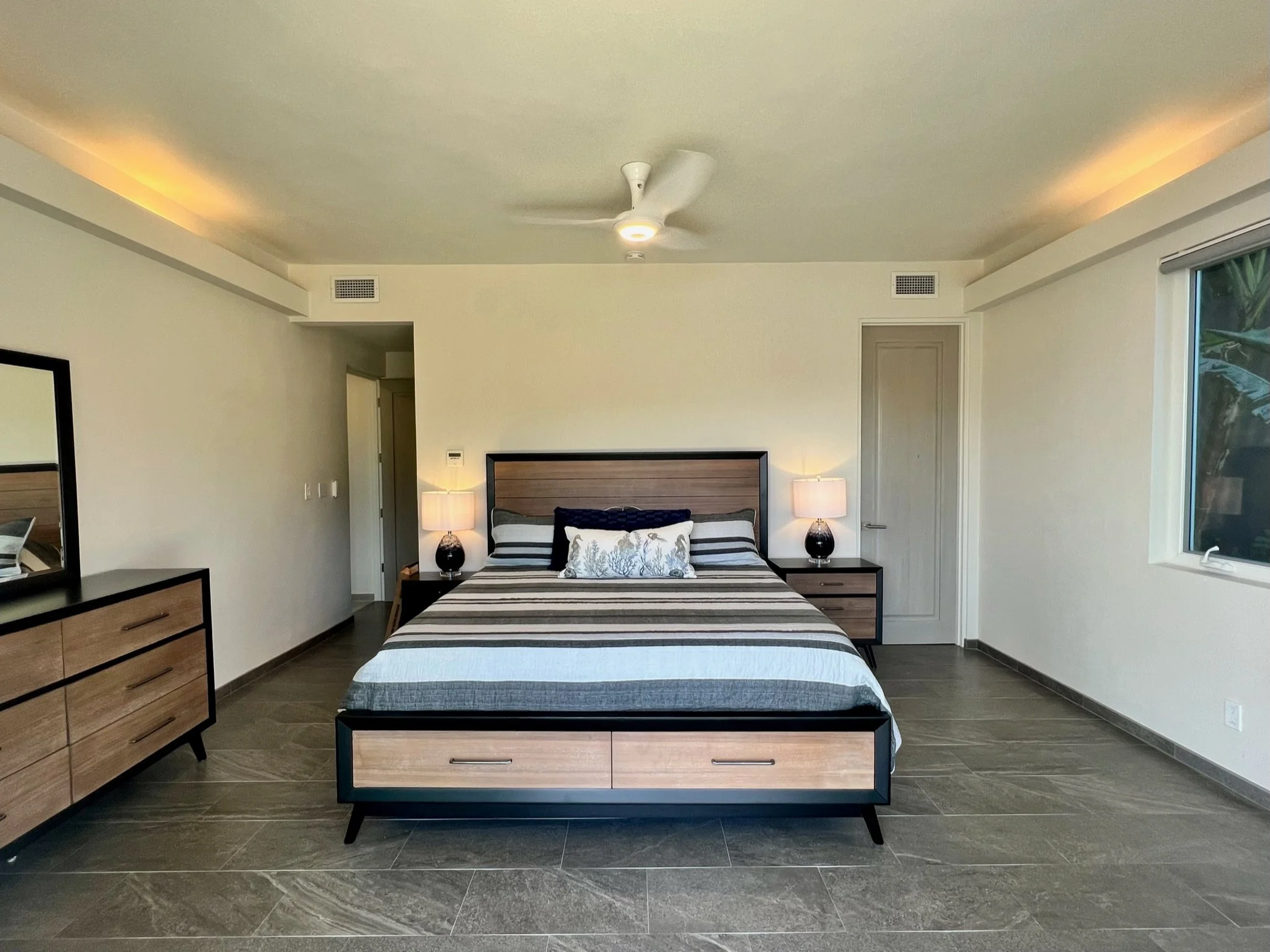This property is just a short walk to one of the most stunning and coveted beaches on St. John, with shore access limited to homes within the prestigious gated Ditleff Point Community for unbothered beach days and supreme snorkeling. With three equal king bedrooms, all with en-suite baths and an adorable bunk set up in the private theatre, this home can accommodate a party of up to six adults and four children yet is also cozy enough for a romantic getaway for the discerning couple.