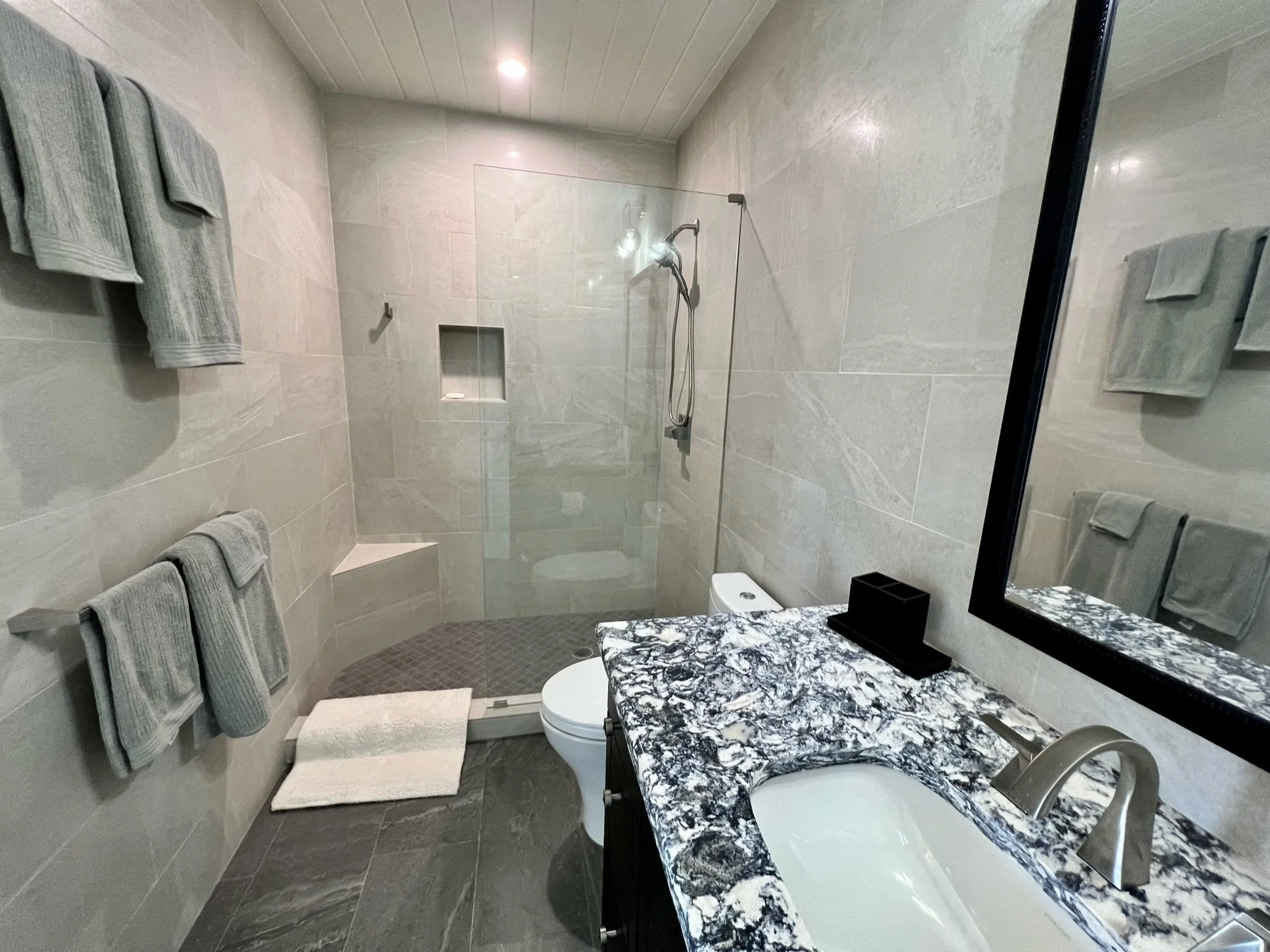 Kitchen and bathrooms stocked with all paper goods