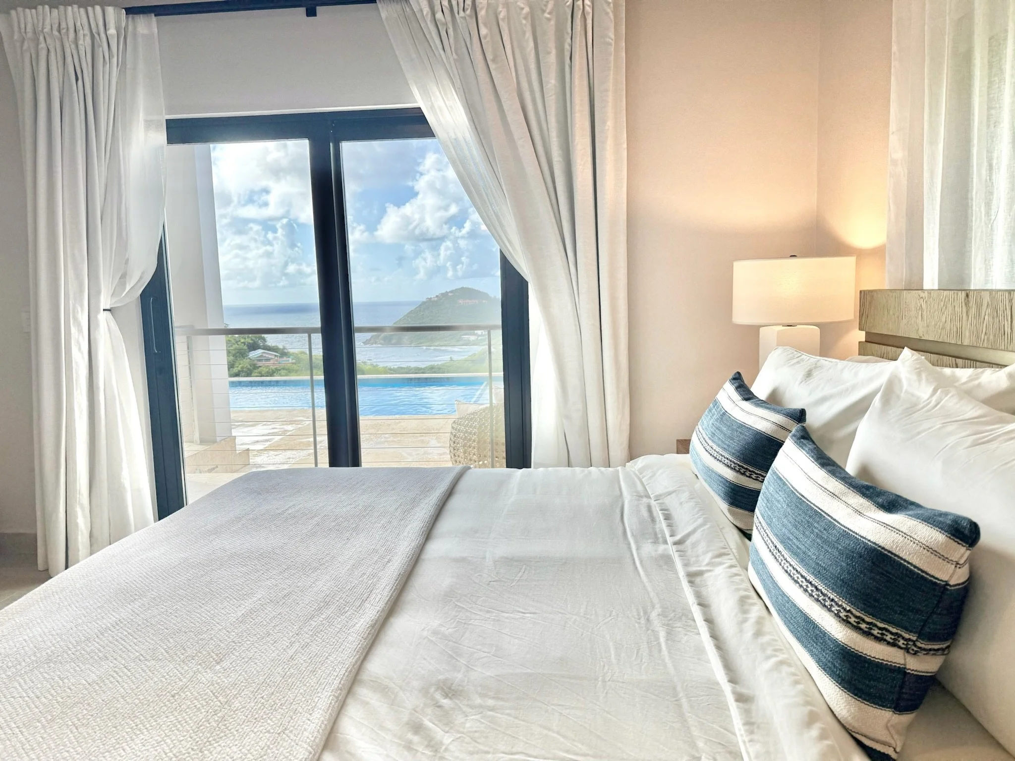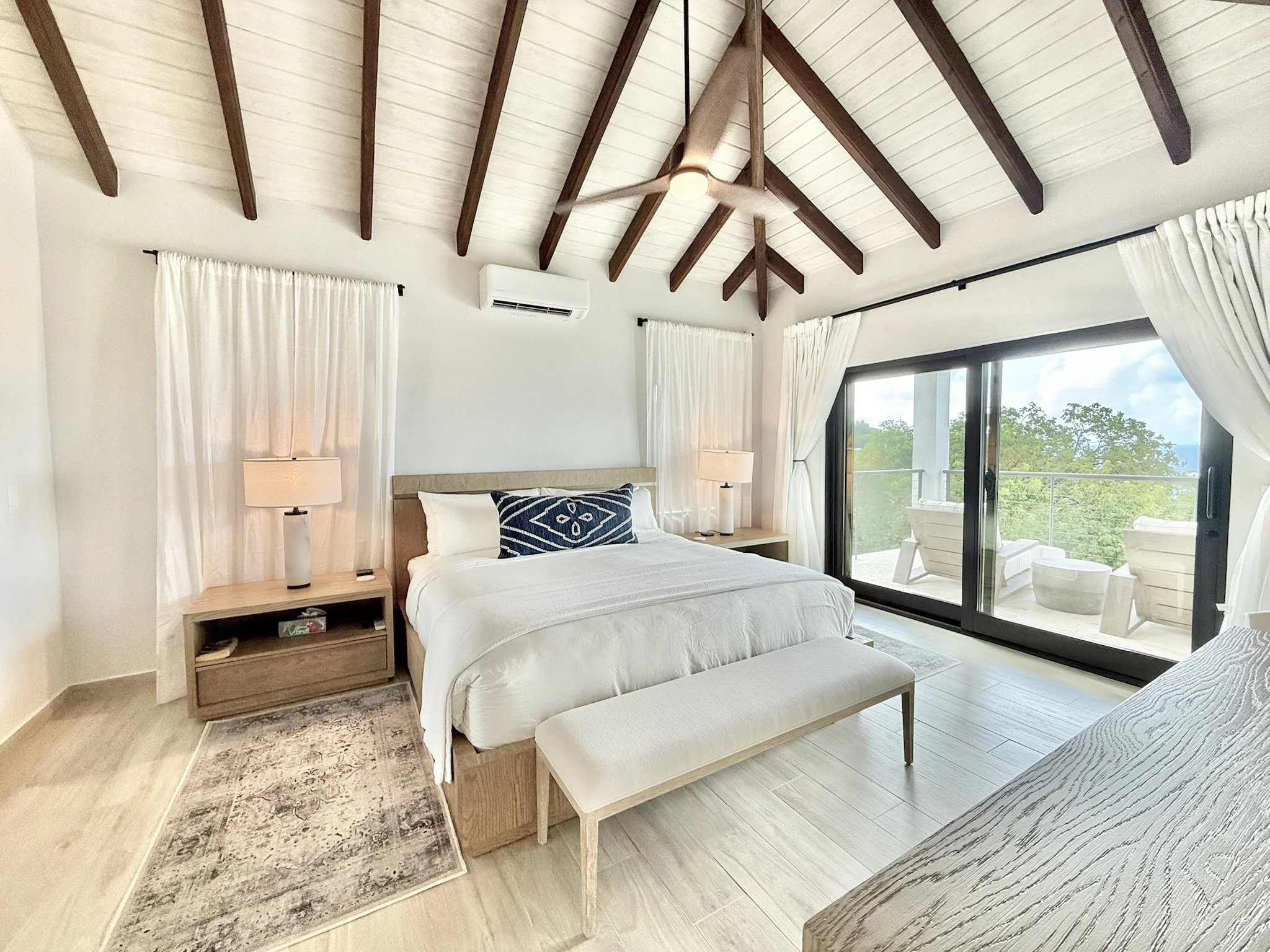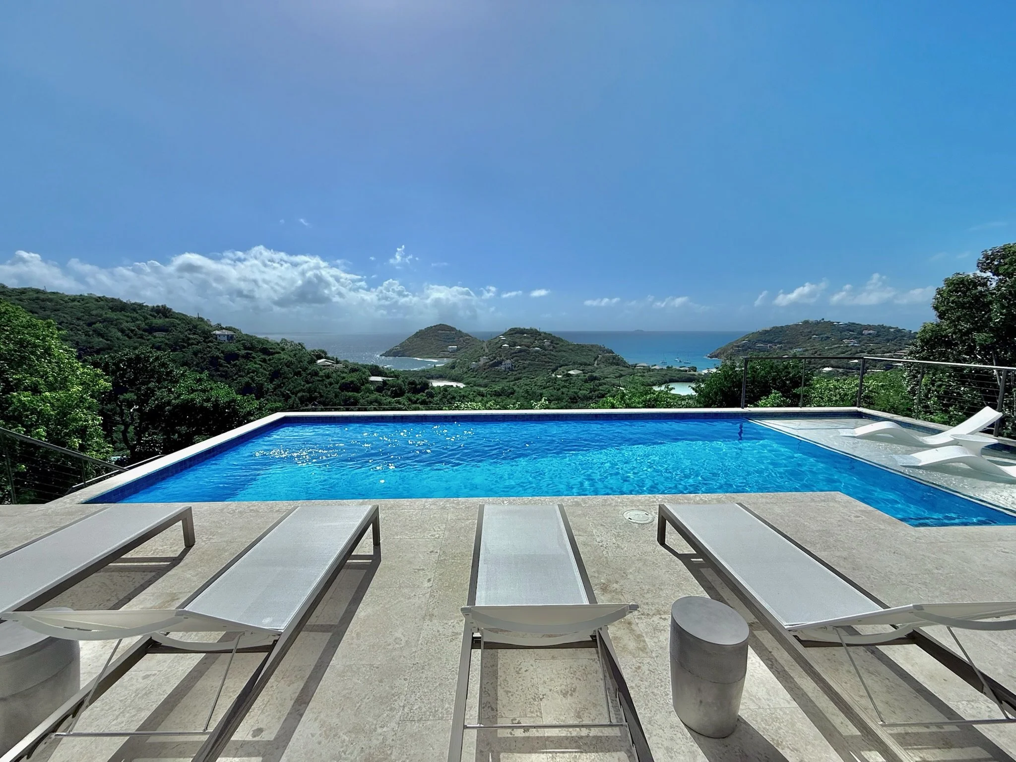 The simple elegant luxury of this modern pool villa makes for the ultimate villa vacation on St John. The home is outfitted with Restoration Hardware furniture, high end Wolf and Sub-Zero appliances, Westin Heavenly mattresses and premium linens all surrounded by manicured tropical gardens. The stunning oversized pool with a glorious sunning shelf and overlooking 2 reef lined Caribbean bays makes for that easy lounging vacation you’ve been dreaming about. Well thought out for comfort and function, the house features air conditioning throughout, a robust redundant WIFI network, automatic back up power and a full sized washer and dryer. Sea Dream has an amazing shaded outdoor dining and living area with lots of comfortable seating. The pool gets full sun all day long and offers open sky lounging whether enjoying sunrise, sunset or stargazing.