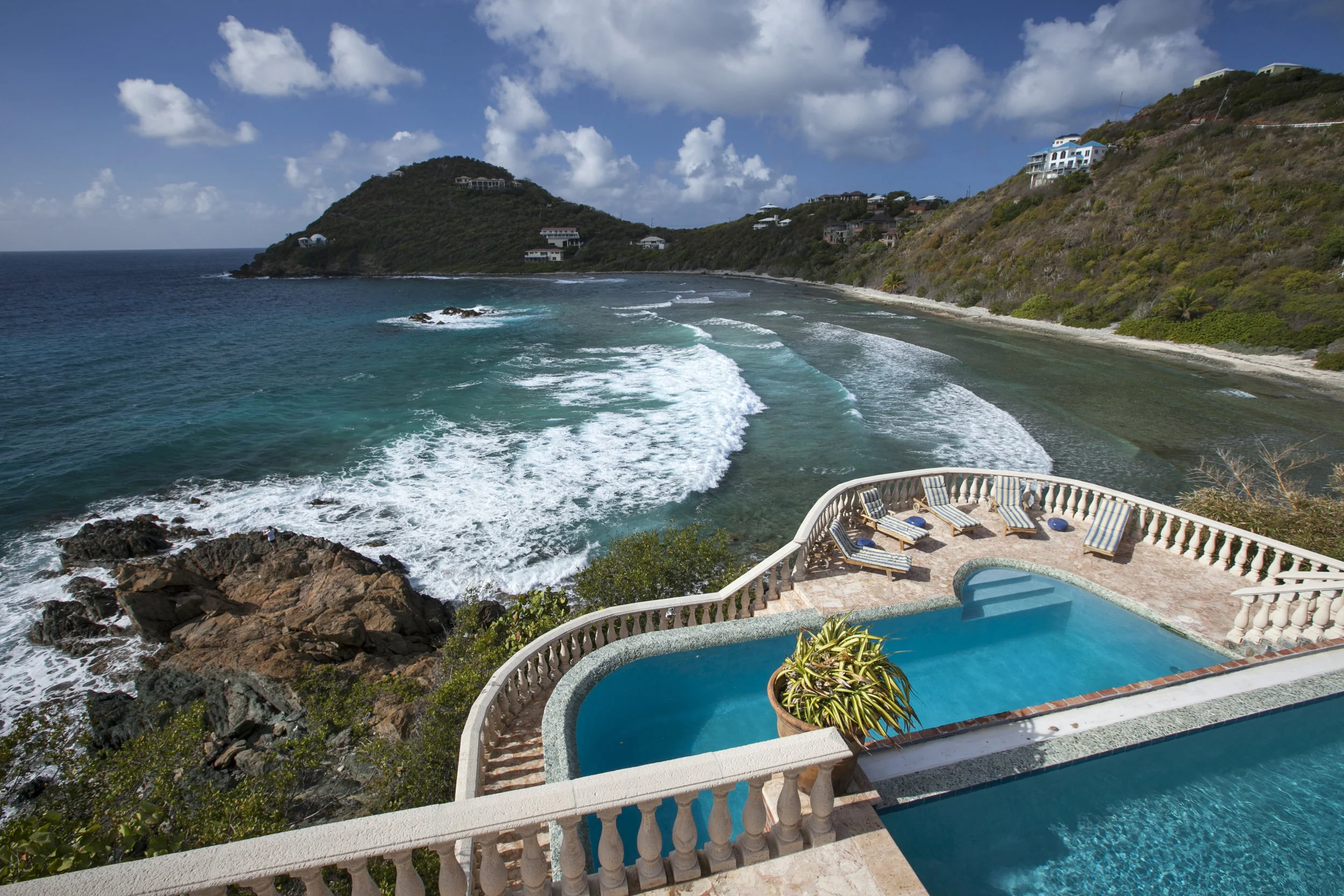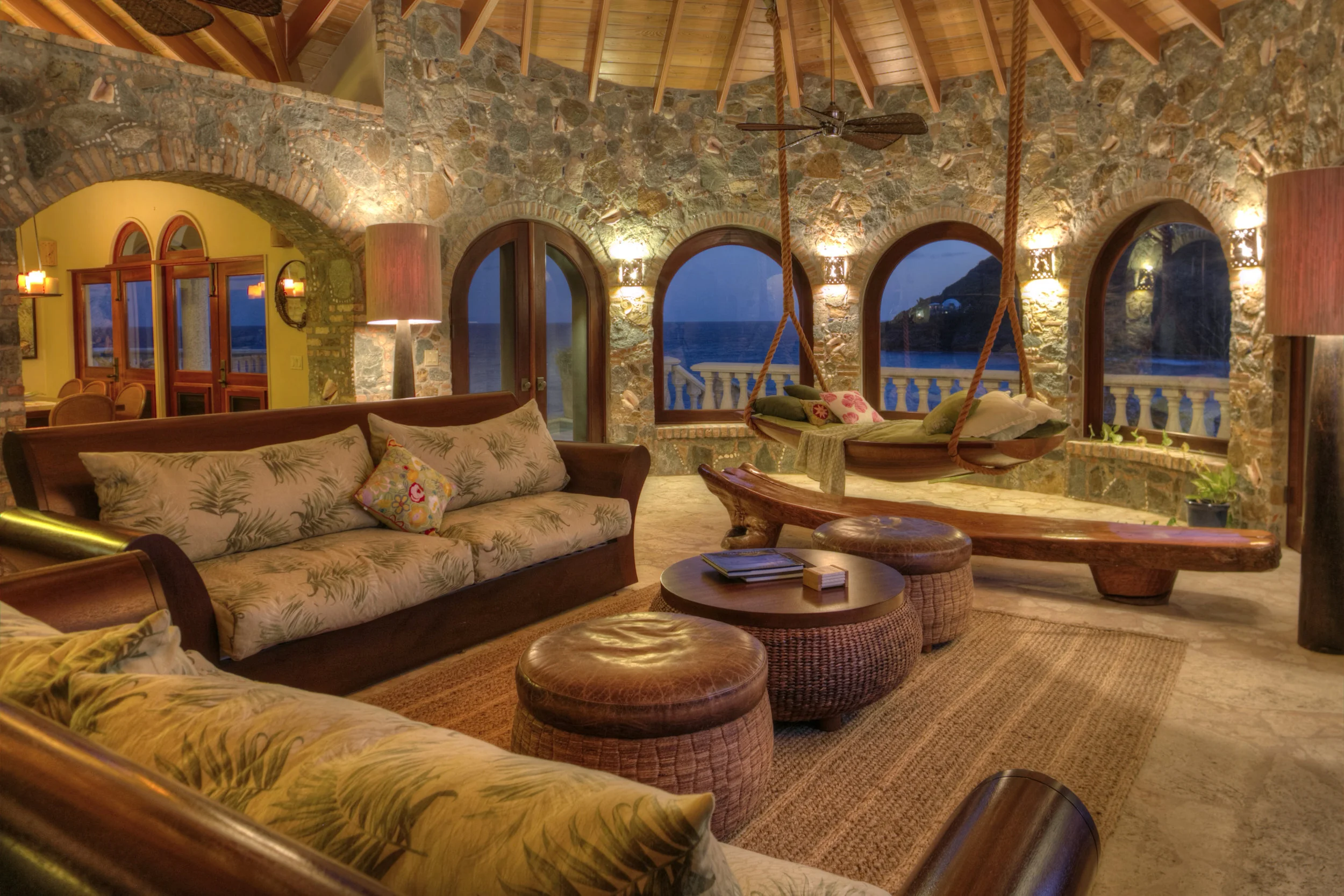 Relax and fall asleep to the soothing sounds of surfing waves and breathe in the clean moist sea air. Villa Mistral sits on an acre of lush gardens in dynamic Hart Bay. Less than 40 feet from the oceans edge, lay in one of two infinity edge pools and spot turtles ducking the waves up close. This romantic and exciting villaalso has a waterfall and intimate grotto, custom and unique furniture including a swinging boat hammock, a private gym and recreation room with billiards and ping-pong table, and large backup generator. Villa Mistral offers a magnificent balance of ultimate privacy in each guest room with an inviting interior and exterior living space for intimate family gatherings.